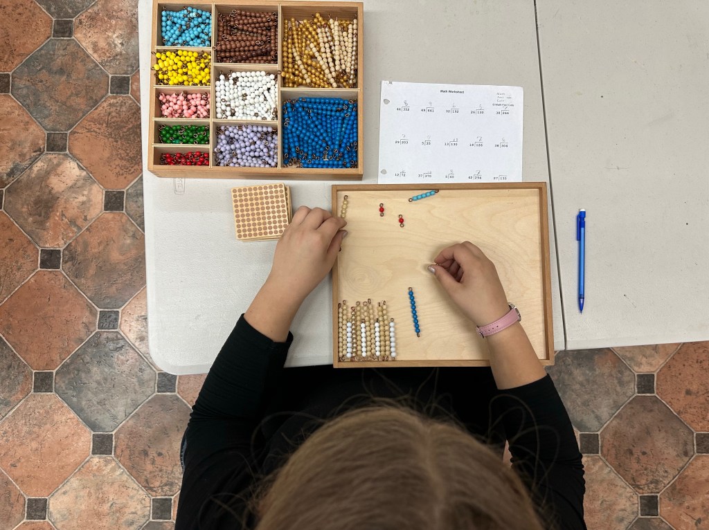 Montessori brings these concepts into the real world. Students have the opportunity to contemplate the abstract while engaging with the real, and building their innate understanding of mathematical concepts.
